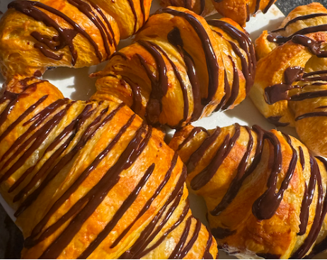 Huevos hervidos en una salsa de base de tomateslla y pimentón, ompañados con pan artesanal de la casa.
